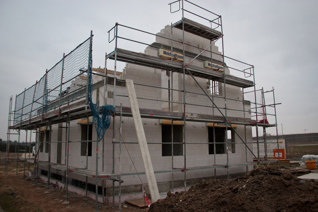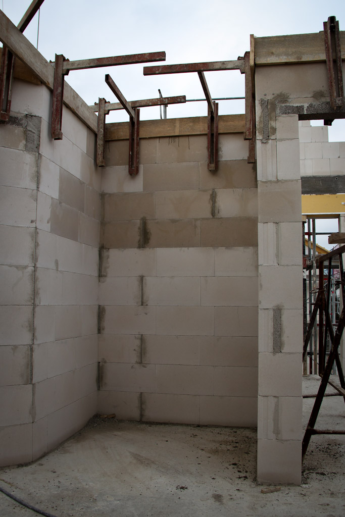 Obwohl seit dem Eintrag zum Erdgeschoss nur eine Woche vergangen ist, hat sich seitdem doch einiges getan: Wie ihr auf den Fotos erkennen könnt, ist das Dachgeschoss schon beinahe komplett gemauert. Heute haben wir es zum ersten Mal erkundet und es ist abermals einfach nur ein fantastisches Gefühl diese Etage live erleben zu können – selbst wenn noch viele Werkzeuge den Weg verstellen. Viel wichtiger ist für uns aber die Klärung des Zaun-Konflikts! Nachdem die Handwerker, die für die zu legenden Fundamente verantwortlich sind, nur noch bis Mitte der Woche auf der Baustelle sind, mussten wir den Druck erhöhen, sprich mit rechtlichen Schritten drohen – ein Schritt, vor dem ich mich lange gescheut hatte. Gestern Vormittag kam endlich der erlösende Anruf, dass die Nachbarn eingelegt haben, das alte Fundament samt Zaun von unserem Grundstück entfernen lassen und die Kosten dafür übernehmen. Ihr könnt gar nicht glauben, was für ein Stein uns vom Herzen gefallen ist!