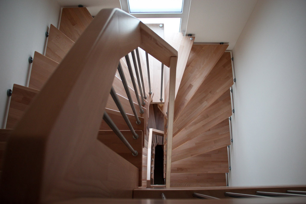 Enge Treppe? Das sieht nur auf dem Foto so aus. Die ist ziemlich geräumig und es kommen locker zwei Personen aneinander vorbei. Eng ist dagegen die Treppe auf die Dachspitze hoch. Da muss ich irgendwann noch ein Foto machen… 🙂