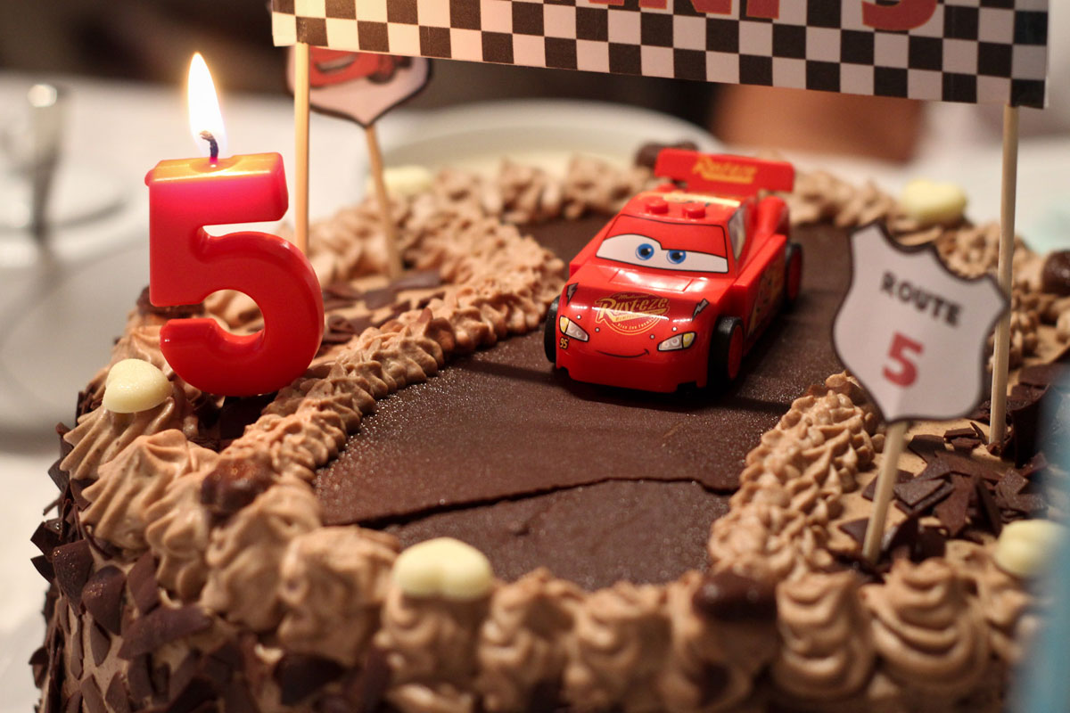 Am Nachmittag sind fünf Kinder durch das Haus getobt und haben mit neuen und alten Spielsachen gespielt. Auch die Carrera-Bahn des letzten Jahres war erneut sehr begehrt. Zum Kaffee gab es zudem noch eine leckere Torte, bei der wir natürlich auch das inoffizielle Thema des Geburtstags aufgeriffen haben.