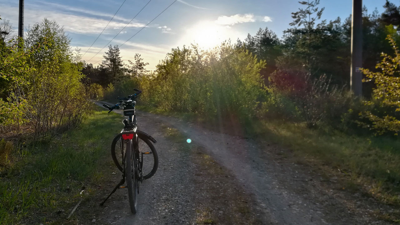 Nachdem ich die Kalorienzufuhr zum vorverlegten Ende der Fastenzeit wieder hochgefahren habe, wäre die naheliegende Wahl, auch das Laufpensum wieder nach oben zu schrauben. Geht aber aus den bekannten Gründen nicht. Also wieder auf das Rad geschwunden und nach den 43 km vom Gründonnerstag eine neue Runde ausprobiert. Dieses Mal quer durch den Wald: