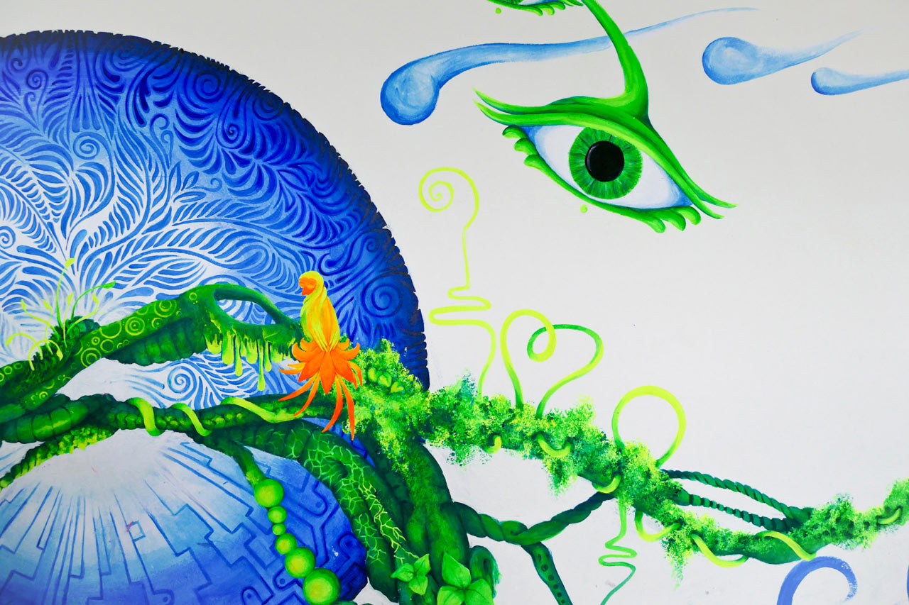 Psychedelische Bilder prägen bereits den Eingangsbereich