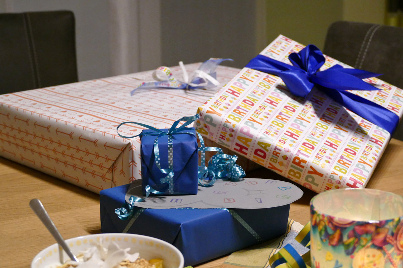 Da es ein Schultag war, haben wir Eltern uns gegen 5:30 Uhr aus dem Bett geschlichen, um selbst schon einmal fertig zu sein, bis wir dann um 6 Uhr den Zwergofanten geweckt haben. Nach einem schnellen Geburtstagsfrühstück und den ersten Geschenken ging es auch in die Schule und ich habe mich der Arbeit gewidmet.