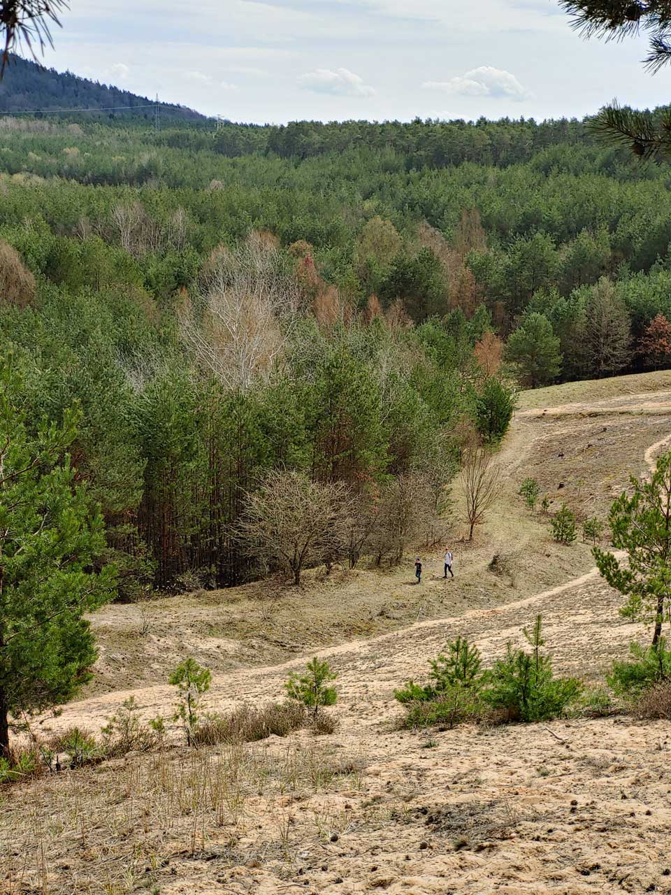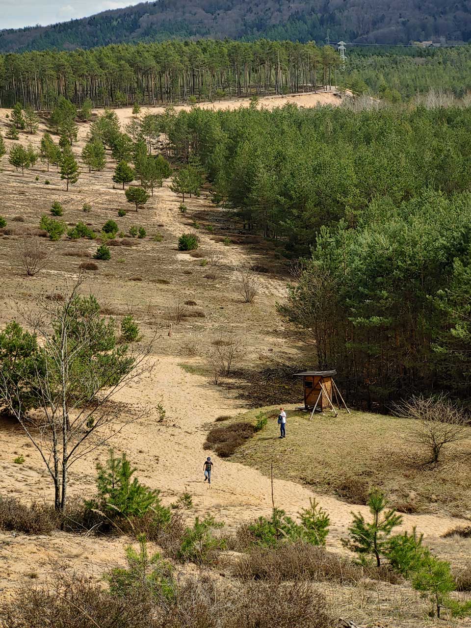 Der Weg bis zu den Dünen war mit 5 km nicht sonderlich kurz und hat eher durch bekannte Gefilde geführt, was nicht sonderlich spannend war. Doch als wir auf den sandigen Untergrund des Kiefernwalds traten, wähnten wir uns in einer anderen Welt:
