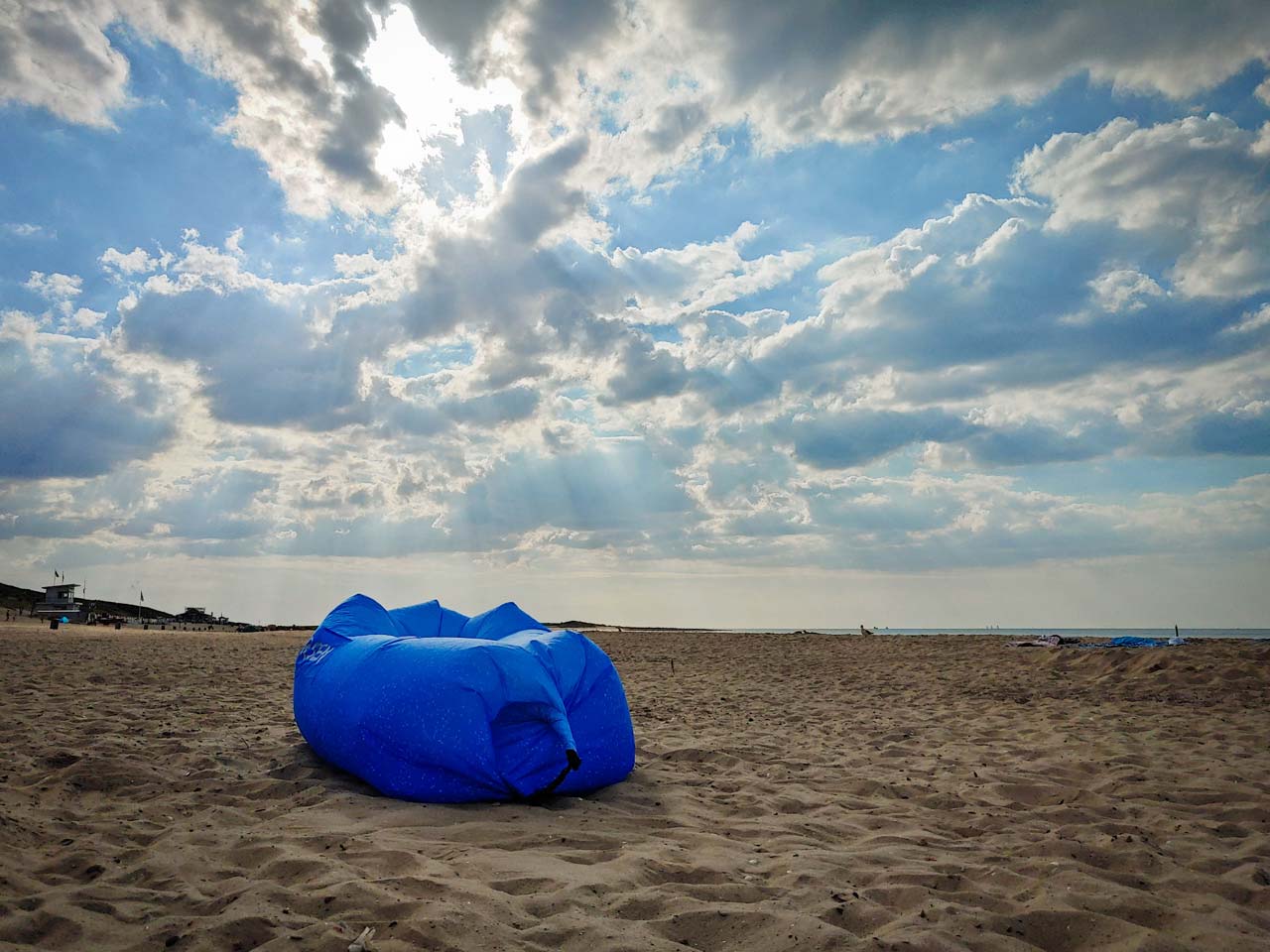 Wie in meinem Geburtstagsartikel schon geschrieben, hat mir die restliche Familie eine Air Bag geschenkt. Braucht kein Mensch, dachte ich immer, doch letztendlich ist es eine wunderbare Möglichkeit, sich an den Strand zu legen. Passt übrigens auch teils in eine Strandmuschel. Das Zappelinchen hat ganze Tage darauf lesend verbracht: