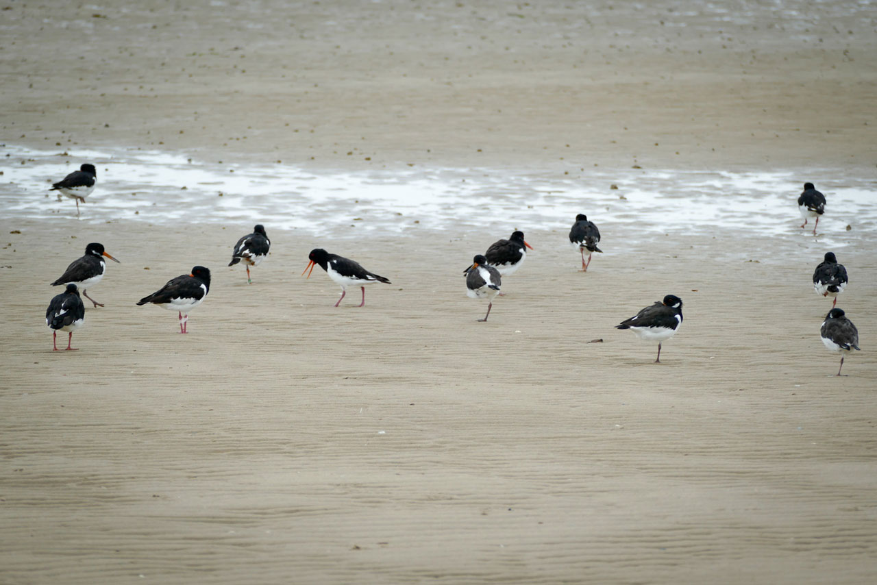 Während unseres ersten großen Strandspaziergangs sind wir auch einigen Austernfischern über den Weg gelaufen: