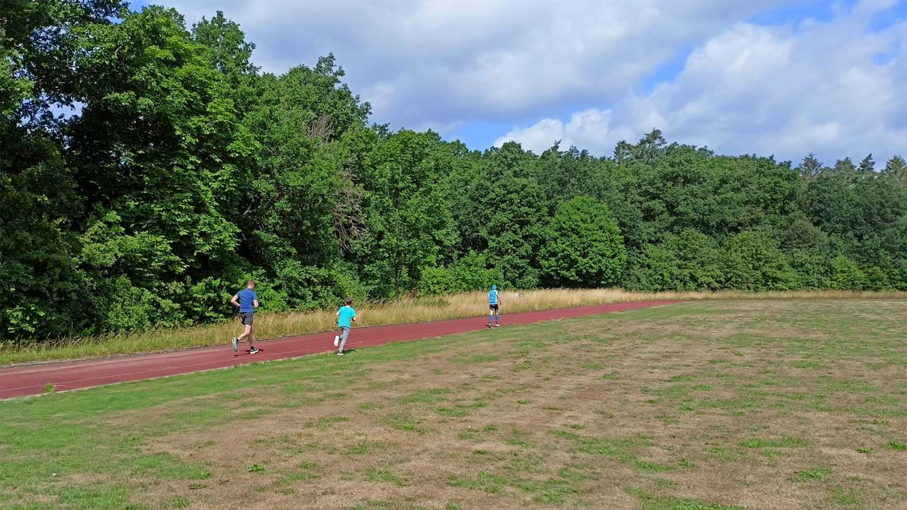 Auch wenn die Anstiege hart waren, so habe ich auch diese gut verkraftet und war häufig mit einer 4:XXer Pace unterwegs (diese dann aber eher bergab). Getrunken habe ich an jeder der fünf Verpflegungsstationen, da ich lieber nichts riskieren wollte. Das hat etwas Zeit gekostet, war es mir aber wert. Das Highlight war für mich wieder meine Familie, die sich mit dem Rad auf den Weg gemacht hat, um mich und die anderen Läufer*innen an vier verschiedenen Stationen anzufeuern. Ohne diesen Zuspruch wäre ich bestimmt nicht so schnell gewesen.