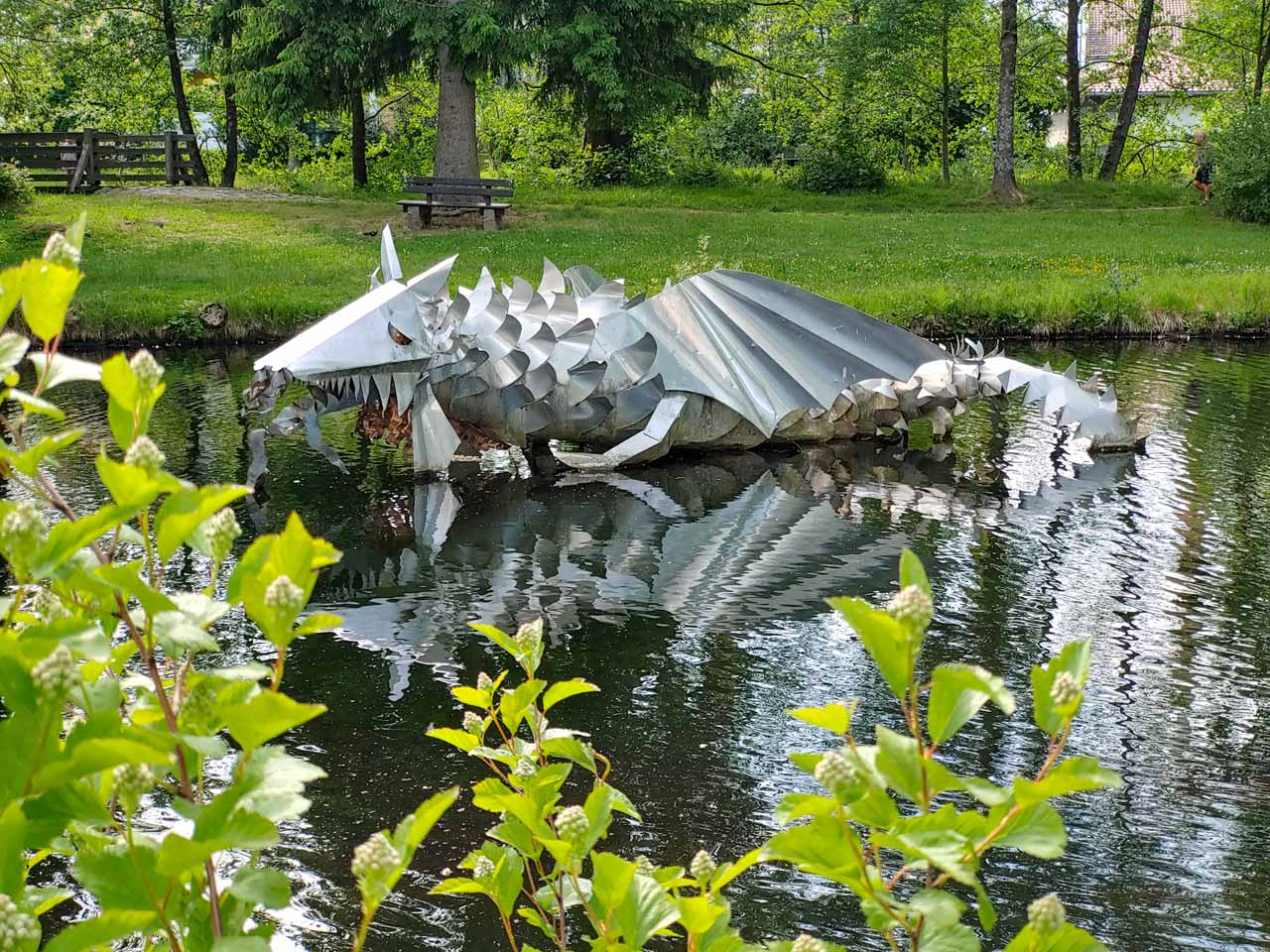 Eine Drachenskulptur im Stadtpark