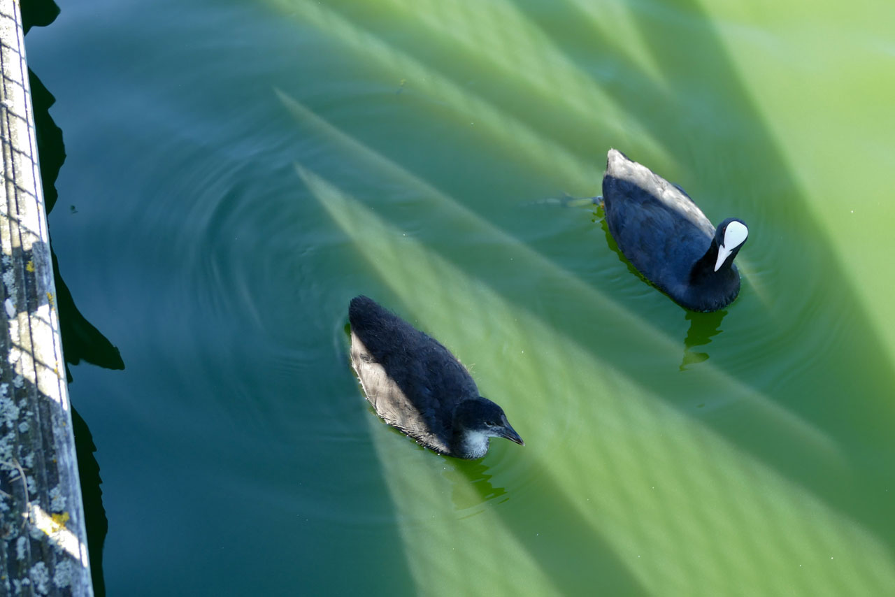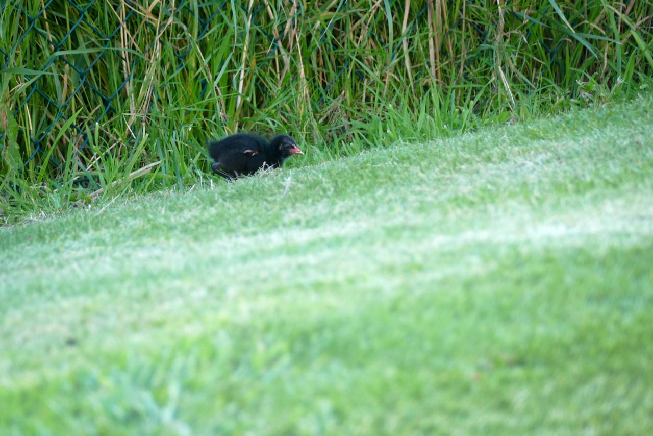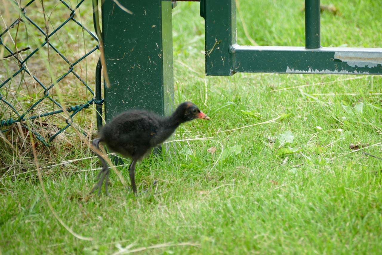 Irgendwann sind dann auch noch ganz junge Wasservögel aufgetaucht, die ebenfalls im Familienverbund durch unseren Garten geflitzt sind. Ich kann nicht mehr sagen, ob dies auch Blässhühner, doch eher Teichhühner oder etwas ganz anderes waren.