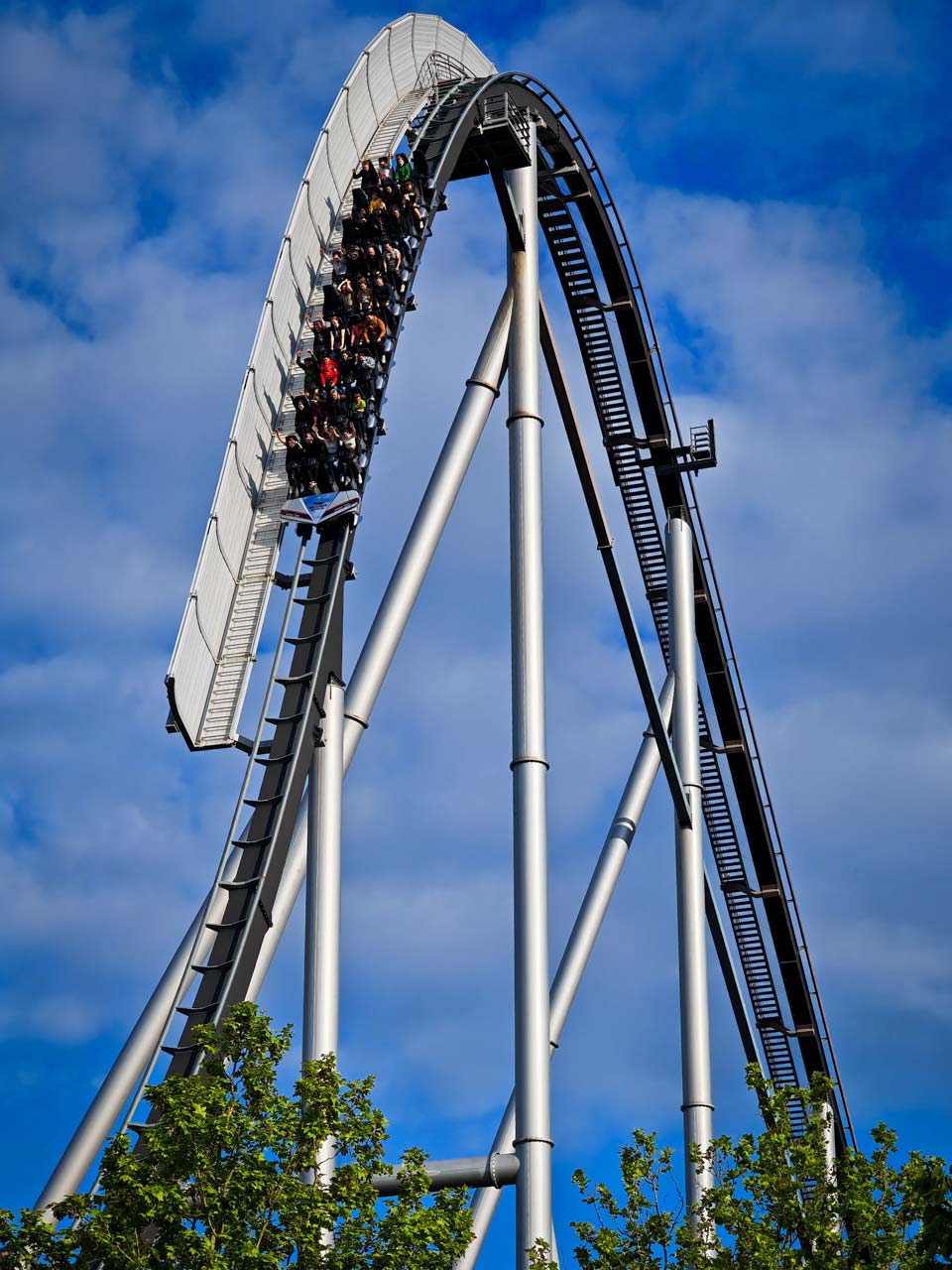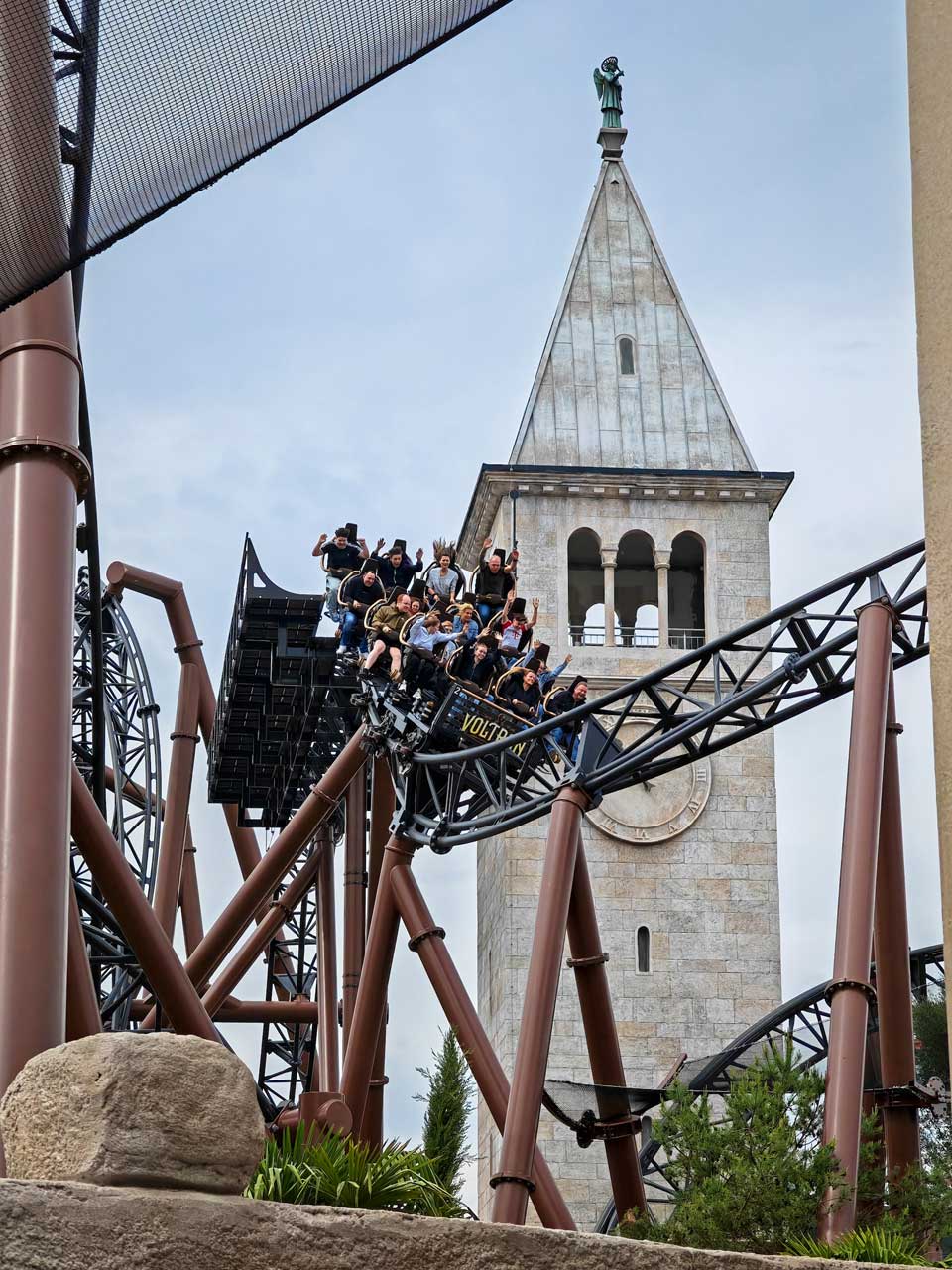 Dieses Mal war ich mutiger, kann aber nicht behaupten, dass ich die Fahrt sonderlich genossen habe. Die extreme Höhe in Kombination mit der Geschwindigkeit ist nicht meins. Dann lieber der Blue Fire, der mir deutlich mehr Spaß macht. Dennoch bin ich froh, es gewagt zu haben. Und da wir gerade alle gerade so mutig waren, haben wir uns auch direkt beim brandneuen Voltron Nevera angestellt.