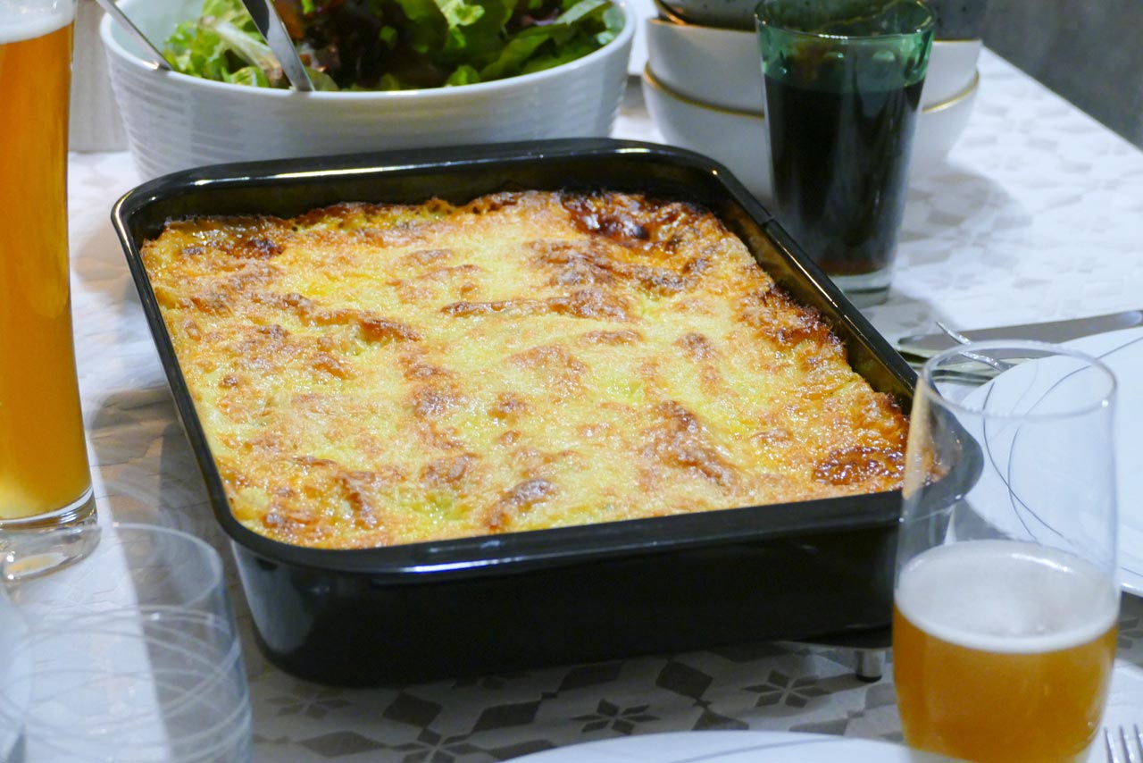 Danach haben die fünf Kinder verstecken gespielt bzw. nur drei von ihnen, denn das Zappelinchen und ihr Cousin sind noch zu einer Chorprobe verschwunden. Turbulent genug war es im Haus dennoch und ehe wir uns versehen haben, war es schon wieder Zeit für das Abendessen. Es gab Lasagne in einer Fleisch- und für mich in einer Veggie-Variante. Sehr lecker und ich habe viel zu viel gegessen.