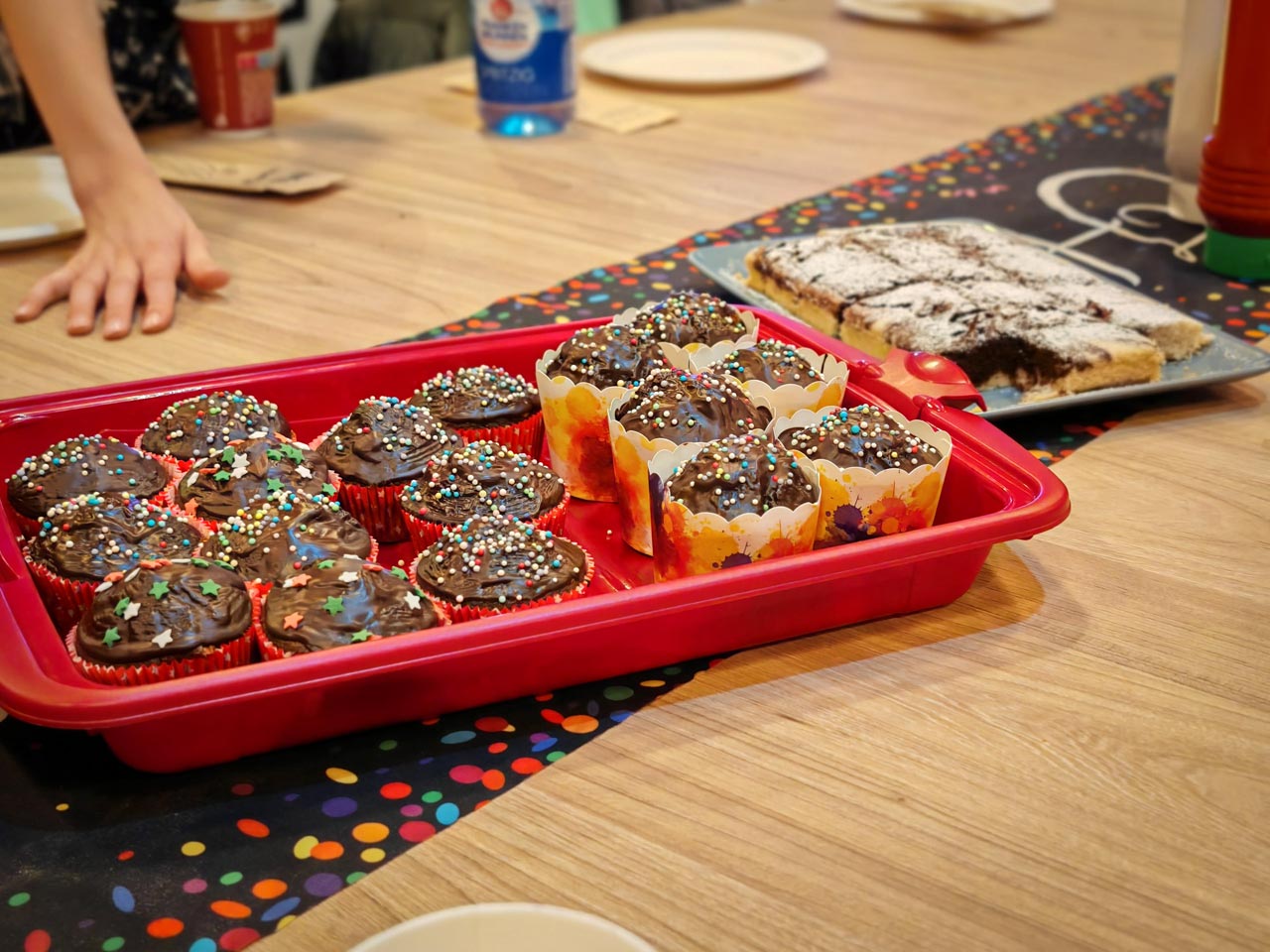 Zwischendurch mussten wir die Kinder immer wieder daran erinnern, auch mal Pause zu machen und etwas zu trinken. Teil des Geburtstagspakets war eine Flatrate für Wasser und Apfelschorle. Das war auch bitter nötig, so viel wie die Kids geschwitzt haben. Nach 90 Minuten Action und Spaß haben sich dann alle an unserem Geburtstagstisch eingefunden:
