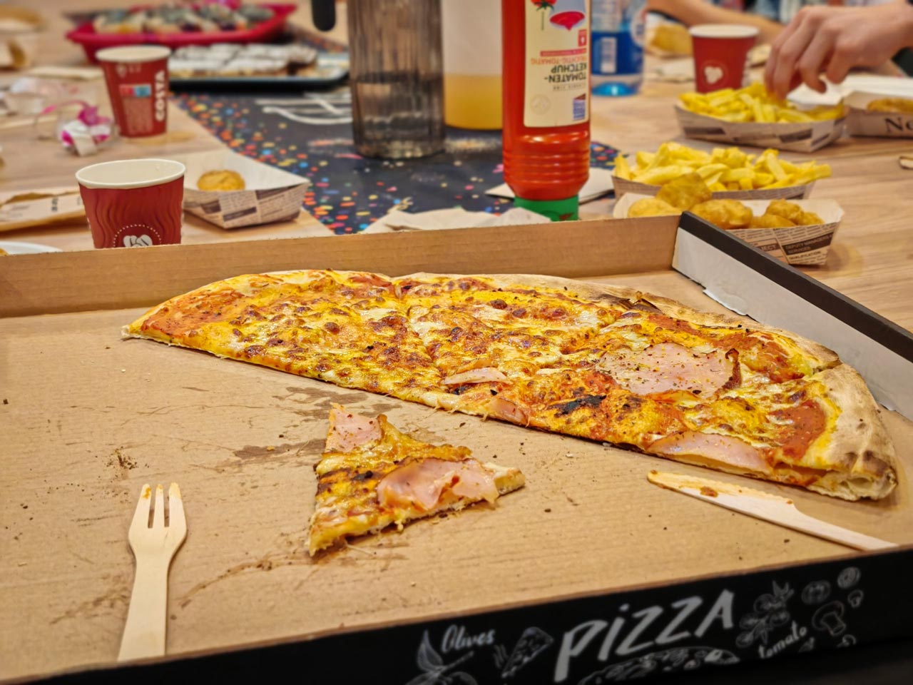 Die Kinder haben nun ausführlich geschlemmt, getrunken und Quatsch gemacht. Nach der Essensschlacht durfte der Zwergofant noch seine Geschenke auspacken und wir haben noch ein Gruppenfoto gemacht. Danach ging es auch schon wieder nach Hause. In sehr müffeligen Autos, denn im Park gibt es weder Umkleiden noch Duschen, was ich schon schwach finde. Da ist z.B. der AIRTIME Trampolinpark deutlich besser aufgestellt. Gut vier Stunden nach Beginn der Geburtstagsfeier waren wir auch wieder zurück. Aufgrund der Geruchssituation haben wir die Feierlichkeiten beendet und alle haben sich aufs Duschen gefreut. Speziell wir Eltern. Danach ging es völlig abgekämpft aufs Sofa und mit „Jurassic Park“ stand noch ein lang ersehnter Filmabend auf dem Programm. Speziell für den Zwergofanten war es ein sehr gelungener Tag.