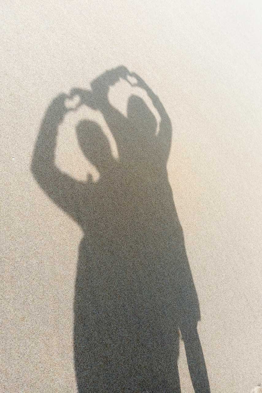 Mit der Sonne kamen auch die Schattenbilder auf dem Sand