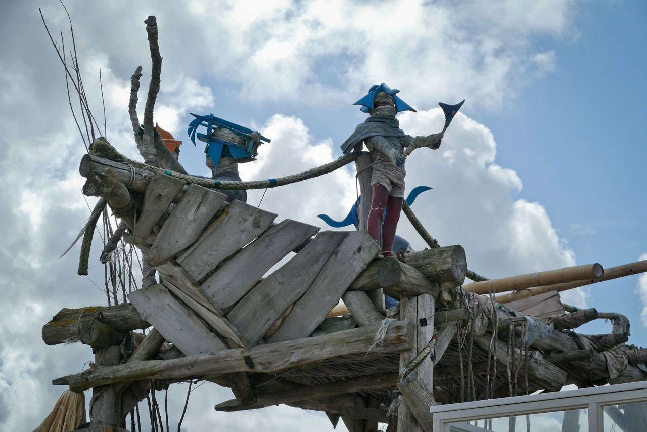 Nach knapp fünf Kilometern kamen wir am Dünendurchgang an, den wir nehmen mussten, um zum Naturschutzgebiet Botgat zu kommen. Dort sind wir an einem künstlerisch verzierten Strandpavillon vorbeigekommen: