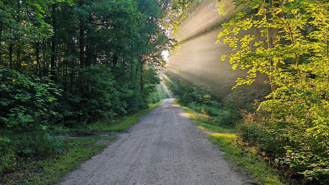 Die erste Hälfte der Strecke durch den Wald war wunderschön (siehe Foto), doch dann ging es an der Straße entlang und war eher nervig. Aber ich wollte einen Rundkurs, nicht nur hin und zurück. Zumindest der letzte Kilometer hat mich wieder durch den Wald geführt. Insgesamt bin ich schnell vorangekommen, denn die Strecke hatte kaum Höhenmeter. Danach schnell geduscht und an den Arbeitsplatz gehuscht. 🏃‍♂️