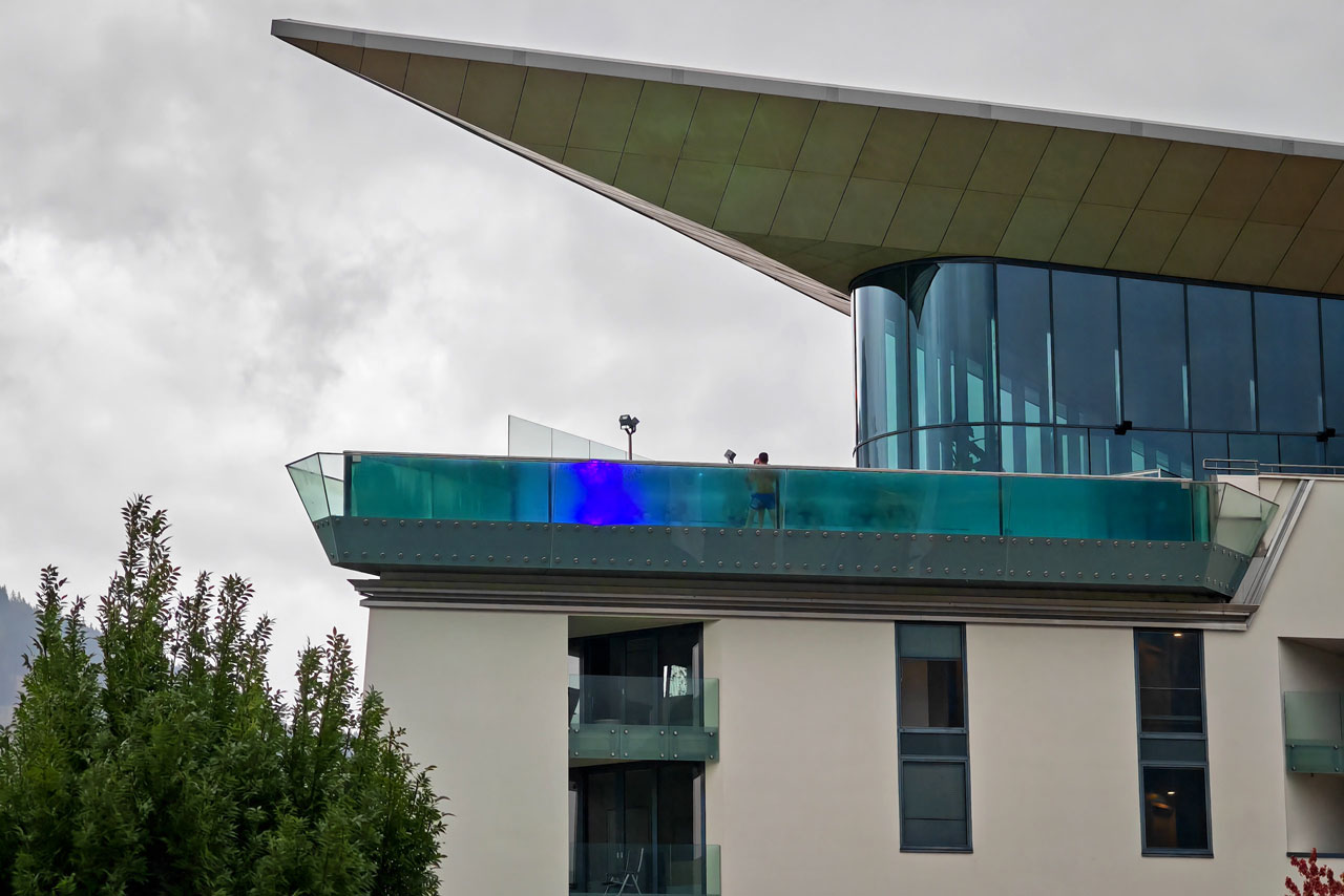 Hatten wir während unseres Urlaubs bisher immer Unternehmungen gefunden, die an das durchwachsene Wetter angepasst waren, so mussten wir an unserem achten Urlaubstag aufgrund des starken Regens tatsächlich auf eine reine Innenaktivität ausweichen. Wenn es eh schon nass war, dann konnte es auch richtig nass sein. Somit haben wir nach dem ausführlichen Frühstück morgens den Bus Richtung Kaprun genommen, um das TAUERN SPA zu besuchen. 🩱🩳