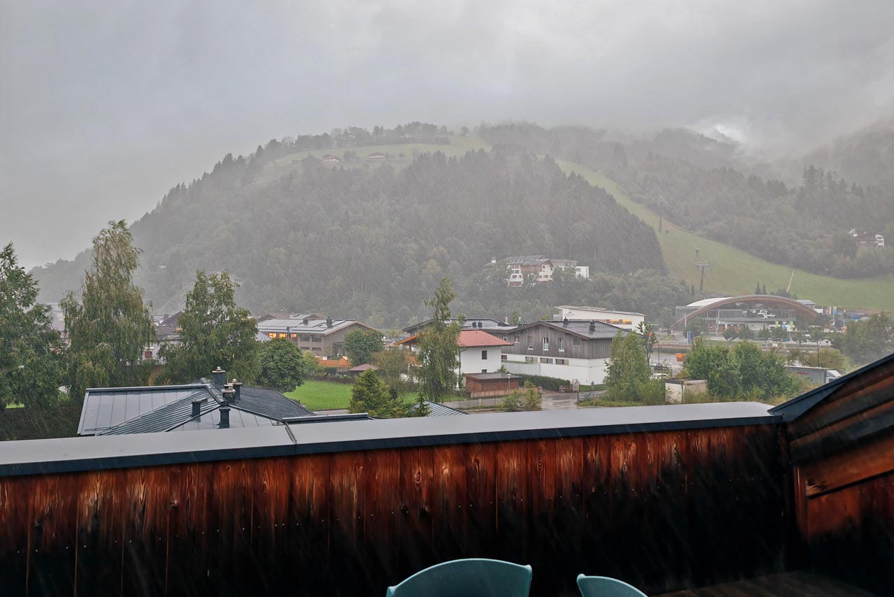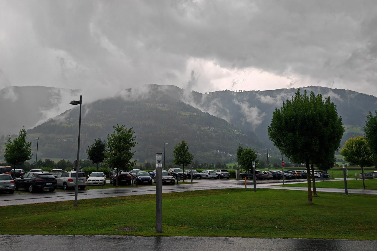 Nach unserem Tag im TAUERN SPA sind wir mit dem Bus wieder zurück gefahren. Wir hatten von der Bushaltestelle bis zum Hotel ca. 500 m Weg und auf diesem hat es so stark geregnet, dass wir erneut komplett nass waren. Bis auf die Unterhose. Das Wasser stand auf der Straße und in unseren Schuhen. Also noch einmal warm geduscht. Wahrlich genug Wasser für einen Tag.