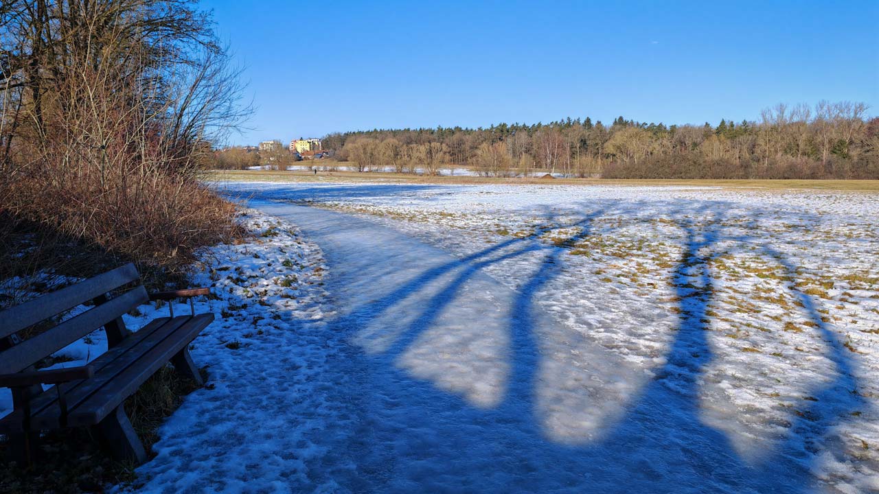 Tatsächlich hat es eher mich schockiert, denn auch auf den sonnigen Abschnitten war noch eine zentimeterdicke Eisschicht. Das Laufen glich eher einem Schlittern und ich musste teils sogar auf die Felder ausweichen. Meine schöne Pace ist deutlich schneller dahingeschmolzen als das Eis. Aber ich bin froh, dass es mich nicht hingelegt hat und hoffe, dass die Wege bis zu meinem nächsten Lauf, vermutlich erst am Donnerstag, dann tatsächlich frei sind. 🏃♂️