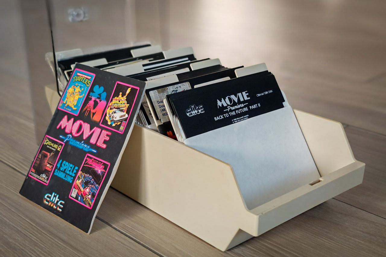 Motiv: Meine alten C64-Disketten mit einer Spieleanleitung